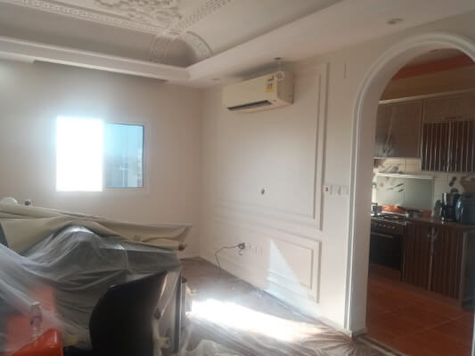• تحضير الجدران: يشمل ذلك ترميم أي عيوب في الجدران لضمان جودة الدهان.
